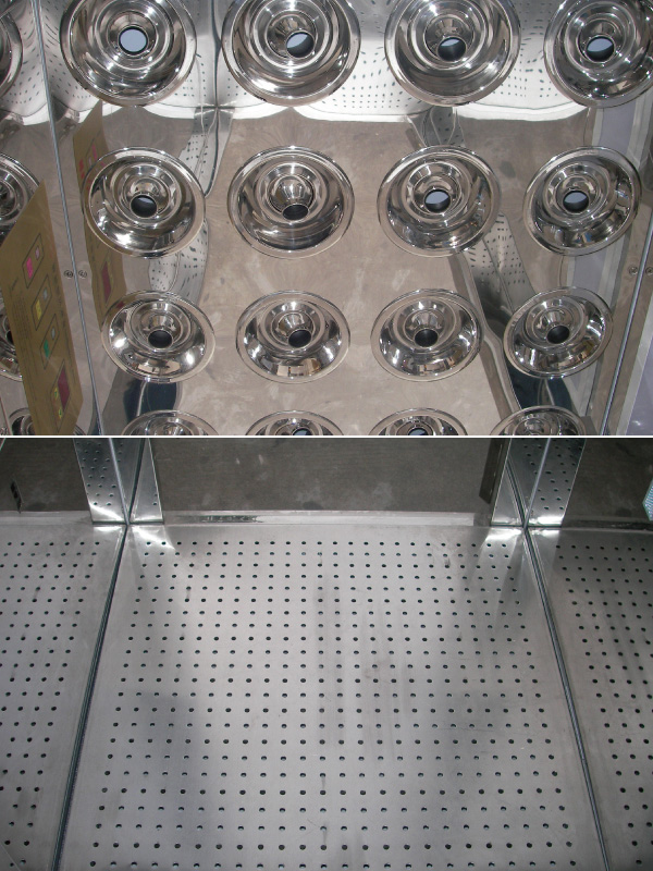 1、高端的風淋室箱體材質(zhì)可選用1.0mmSUS304全不銹鋼制造,內(nèi)底板配全不銹鋼板。