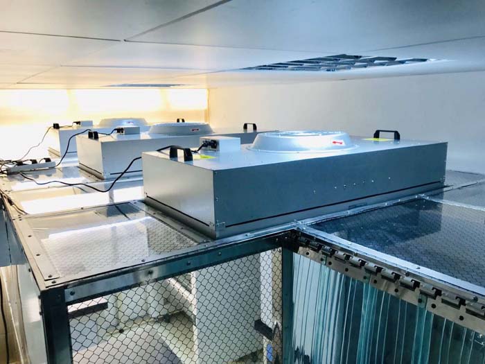潔凈棚高效過濾單元2設(shè)置在風(fēng)機(jī)1下方,與風(fēng)機(jī)1緊密相連,高效過濾單元2可根據(jù)不同客戶的實際需要選擇不同的凈化級別,在高精科技的生產(chǎn)研發(fā)中,比如在半導(dǎo)體工業(yè)中,一般采用凈化級別很高的PTFE超高效過濾器;