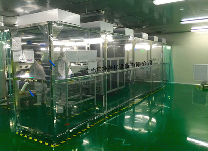 百級(jí)潔凈棚可選配件(FFU),百級(jí)潔凈棚FFU是安裝在它的頂部上,而它的頂部又由盲板鋪蓋、密縫嚴(yán)密、四周用防靜電簾/防靜電有機(jī)玻璃圍成,四周底部利用正壓自然排風(fēng)等形式,使?jié)崈襞飪?nèi)潔凈度可達(dá)到10到1000級(jí)左右。百級(jí)潔凈棚百級(jí)潔凈棚通常都是建在潔凈室內(nèi),可配上風(fēng)淋室傳遞窗以及空調(diào)送風(fēng)系統(tǒng)效果比較好,成本與潔凈室比較會(huì)大大降低,當(dāng)然這與潔凈棚所需材料、大小以及潔凈級(jí)別有一定的關(guān)系。會(huì)將潔凈棚建在無(wú)塵室之內(nèi),但有的客戶不想單獨(dú)建無(wú)塵車間,在潔凈棚考慮空調(diào)系統(tǒng)及風(fēng)淋室、傳遞窗等凈化設(shè)備的情況下,潔凈棚的成本約是無(wú)塵車間造價(jià)的40%~60%,這取決于客戶對(duì)潔凈棚材料的選擇,以及潔凈棚的大小。需要潔凈的區(qū)域越大,潔凈棚與無(wú)塵車間的成本相比差別會(huì)越小。潔凈棚周圍一般都是采用防靜電網(wǎng)格簾或是有機(jī)玻璃,送風(fēng)部均采用FFU潔凈送風(fēng)單元。潔凈棚框架一般使用工業(yè)鋁型材,頂部可用不銹鋼鋼板、烤漆冷塑鋼板、防靜電網(wǎng)格簾及壓克力有機(jī)玻璃等材料。潔凈棚周圍一般都是采用防靜電網(wǎng)格簾或是有機(jī)玻璃,送風(fēng)部均采用FFU潔凈送風(fēng)單元。無(wú)塵車間一般采用泡沫彩鋼或是巖棉板吊頂有立墻,有獨(dú)立的空調(diào)送風(fēng)系統(tǒng),空氣經(jīng)過(guò)初中高效三級(jí)過(guò)濾,人員及物料配有風(fēng)淋室及傳遞窗潔凈過(guò)濾。
