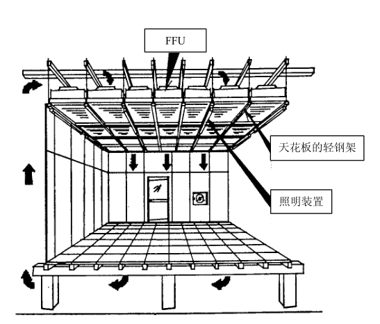 FFU安裝示意圖介紹了FFU與天花照明安裝時(shí)的布置。