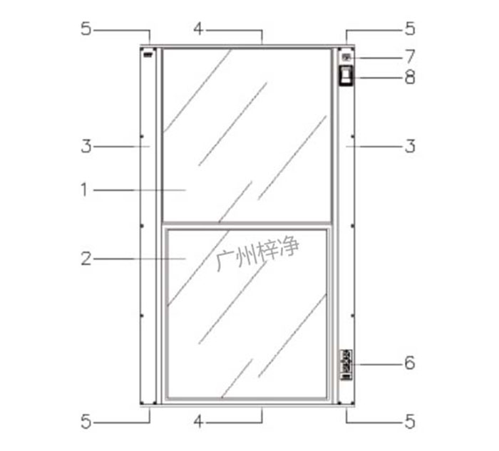 1固定窗(透明玻璃) 2活動(dòng)窗(透明玻璃) 3左右堅(jiān)框 ?4上下鏈接框? ?5安裝螺絲孔(位于上下連接框上下左右四個(gè)角點(diǎn)處)? ?6輕觸式開關(guān)控制板 ????7電源線接口 ????8電機(jī)飾蓋。
