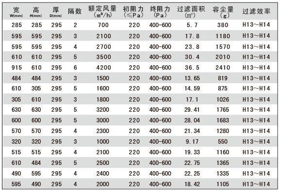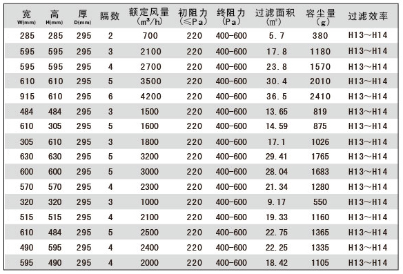 DOP一體化高效過濾器標(biāo)準(zhǔn)技術(shù)參數(shù)