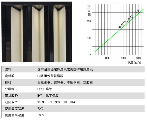 HV系列濾料是采用超細(xì)玻璃纖維制成的高密度紙,浦料褶登以盡量擴(kuò)大派料的有效過濾面積,從而降低濾料的濾速,這對高效過濾器是相當(dāng)重要的.進(jìn)口H&V3波纖濾料具有防水性和阻燃性可適用于1000° F(538℃)的高溫,閉孔EVA密封墊片可用干氣密性密封,防止過濾器側(cè)漏,標(biāo)準(zhǔn)為18mm寬6mm厚。也可采用硅質(zhì)密封墊片,無隔板高效可使用聚氨酸發(fā)泡整體形成,發(fā)泡機(jī)走XY軸,自動運(yùn)行,密封效果相當(dāng)好。