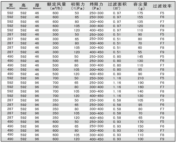 無隔板中效過濾器技術(shù)參數(shù)-用戶選購指南