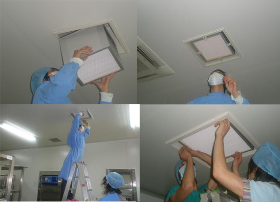 4.高效過濾器安裝前,必須對潔凈室進(jìn)行全面清掃、擦凈,凈化空調(diào)系統(tǒng)內(nèi)部如有積塵,應(yīng)再次清掃、擦凈,達(dá)到清潔要求。如在技術(shù)夾層或吊頂內(nèi)安裝高效過濾器,則技術(shù)層或吊頂內(nèi)也應(yīng)進(jìn)行全面清掃、擦凈。